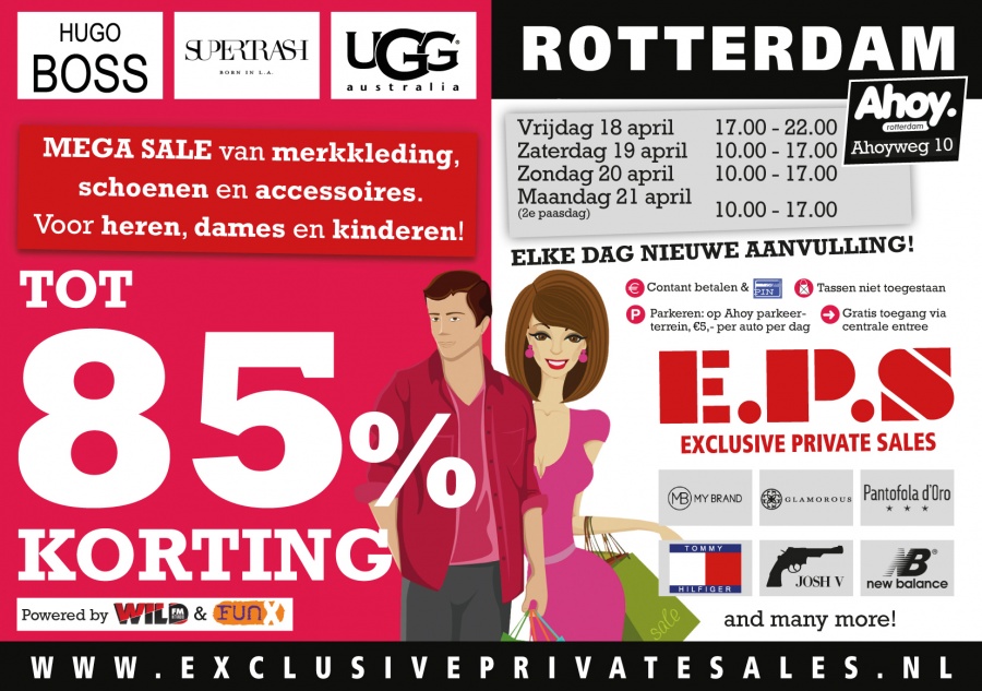 Mega sale van merkkleding, schoenen en accessoires voor dames, heren en kinderen. Kortingen tot 85%