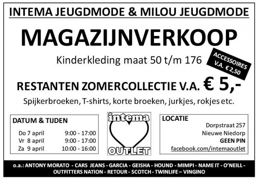 Wil je wekelijks alle nieuwe stock- en sample sales ontvangen? Schrijf je dan in voor onze nieuwsbrief.