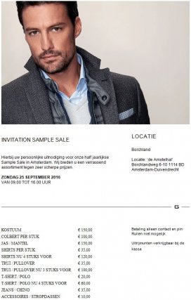 Wil je wekelijks alle nieuwe stock- en sample sales ontvangen? Schrijf je dan in voor onze nieuwsbrief.
