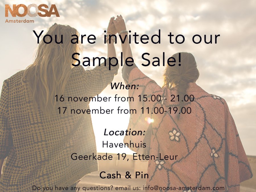 16 en 17 November Sample Sale Noosa-Amsterdam in Havenhuis in Etten-Leur