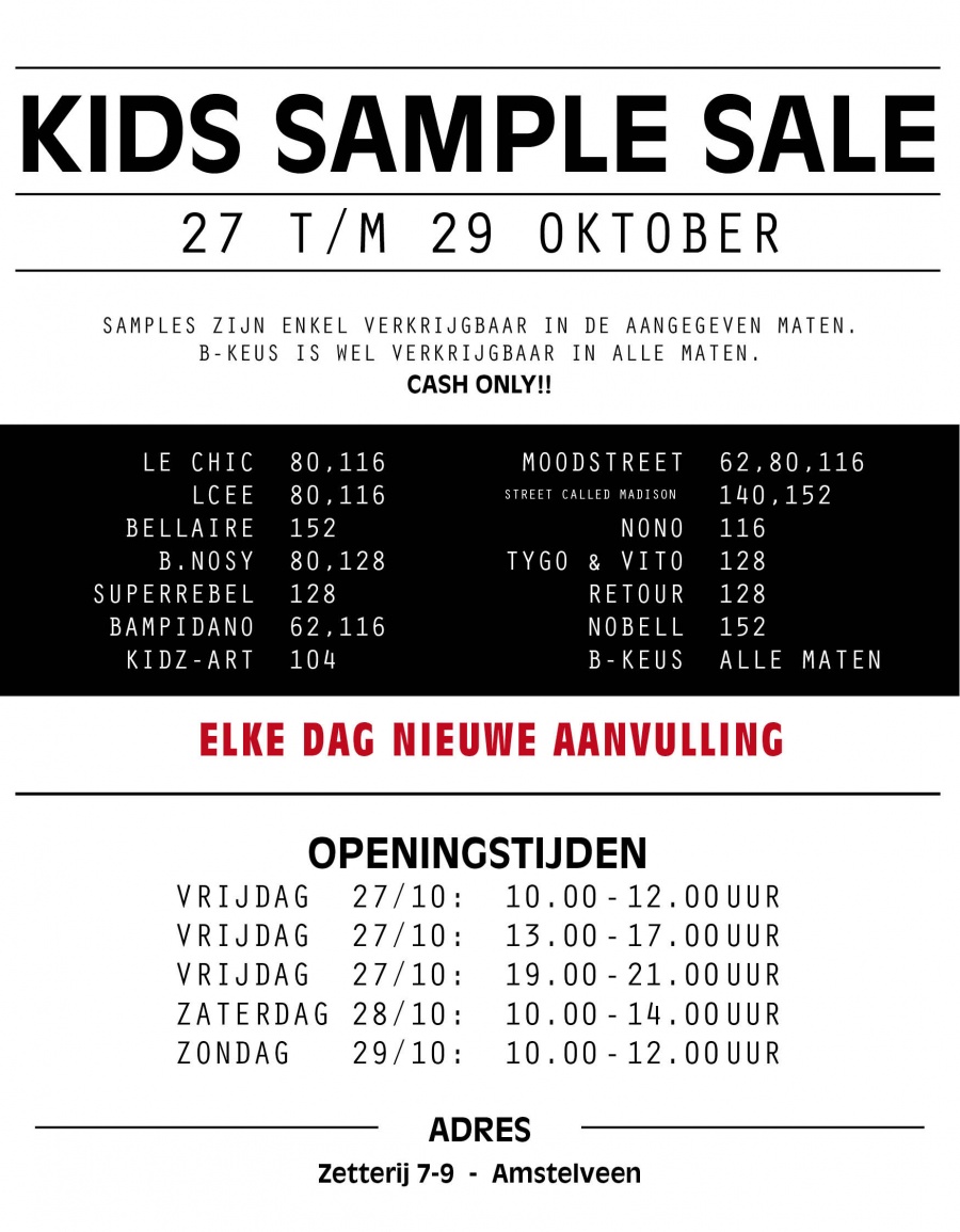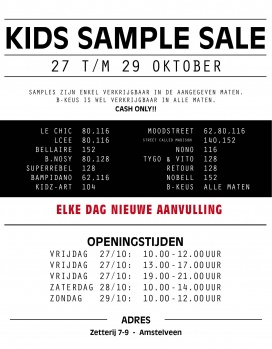 Beschrijving: Grote Sample Sale met mooie kidsmerken, collectie fall 2017