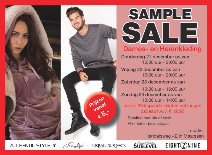 Van donderdag tot en met zondag de laatste SAMPLE SALE ronde voor 2017.