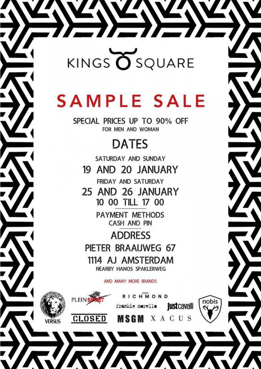 Sample sale van kleding voor dames en heren. De kortingen lopen op tot -90%.