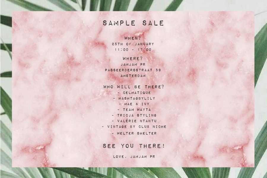 Wil je wekelijks alle nieuwe stock- en sample sales ontvangen? Schrijf je dan in voor onze nieuwsbrief.