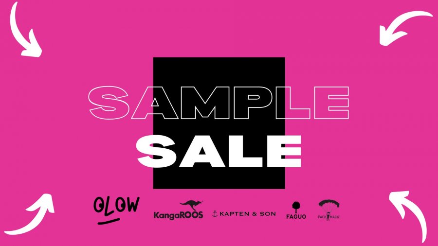Sample sale van duurzame kledingmerken zoals Kangaroos, Faguo, Kapten & Son, Olow, en Packmack.