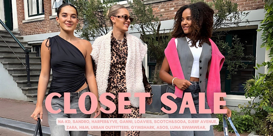 Closet sale georganiseerd door Guusje, Rosa-Milly & Isa Luna closet van kleding van merken zoals Nakd, Ganni, Scotch & Soda, Loavies, Djerf avenue, Sandro Paris, Levi’s, Harper Yve, Gymshark en meer. Daarnaast is er ook een sale pop up van Luna Swimwear.