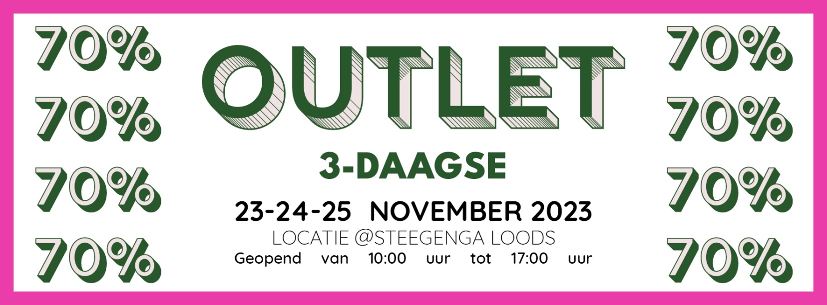 Outlet verkoop van merkkleding voor dames en heren georganiseerd door Steegenga Mode . Kortingen tot -70%.